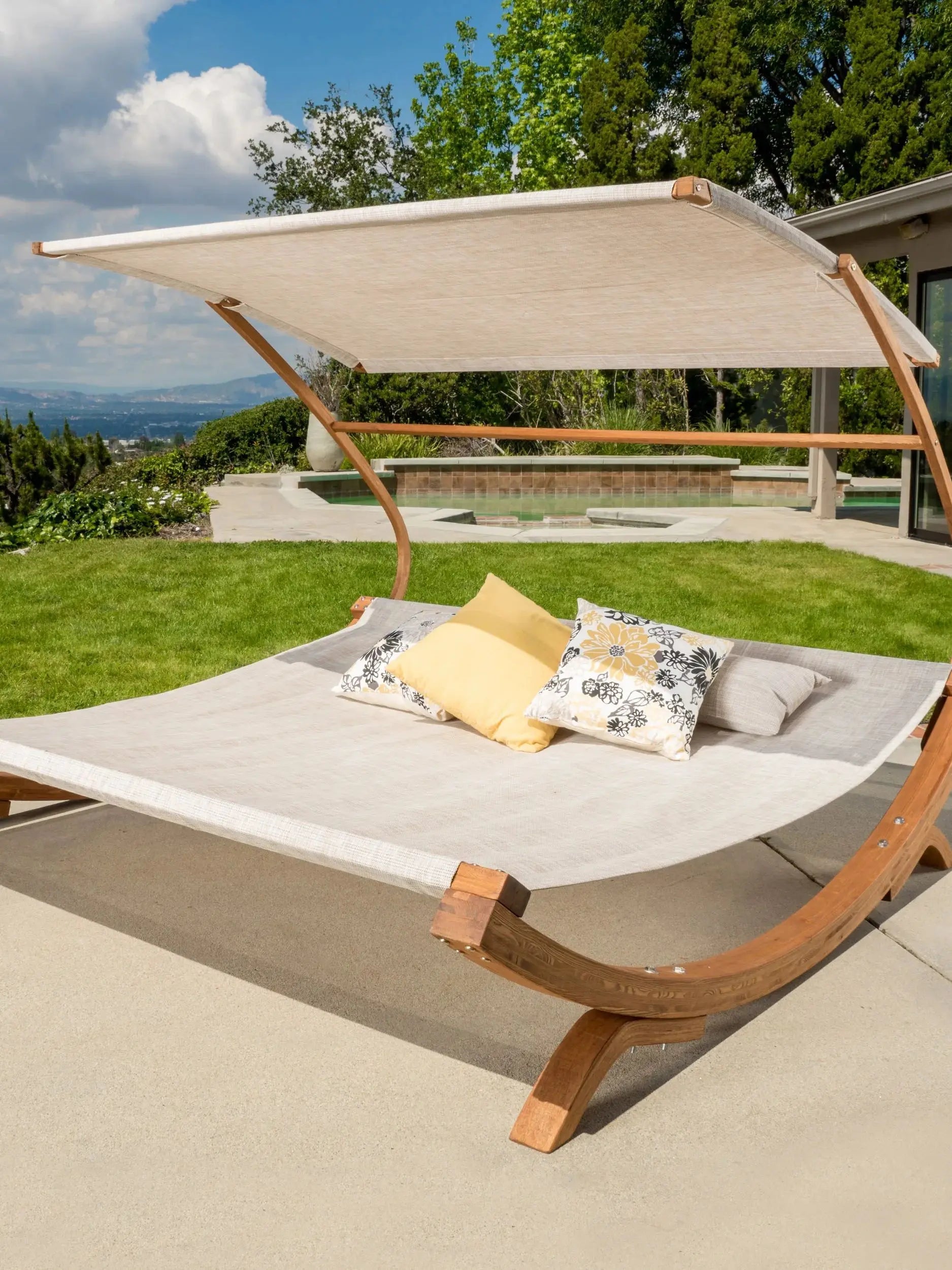 Discover the ultimate in outdoor relaxation sunbed featuring an adjustable canopy. Perfect for those who love spending time outside but want protection from the sun's harsh rays, this sunbed combines comfort and functionality. The weather-resistant teak construction ensures durability through all seasons, while the breathable mesh seat provides a comfortable resting place that molds to your body.