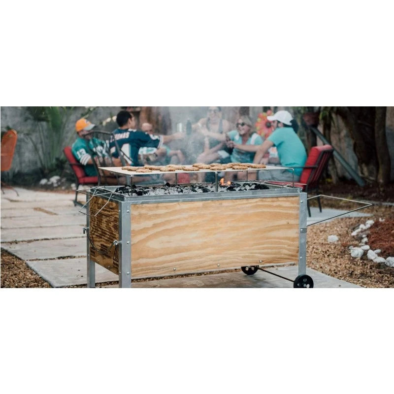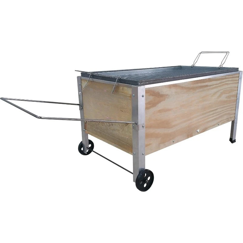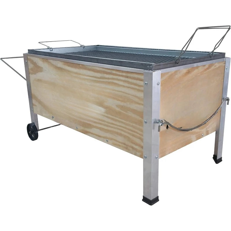 Large wheels and an extending handle make this roasting box easy to move around your space.