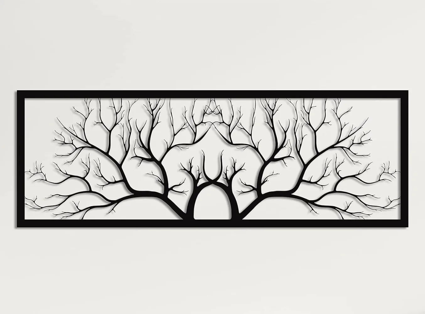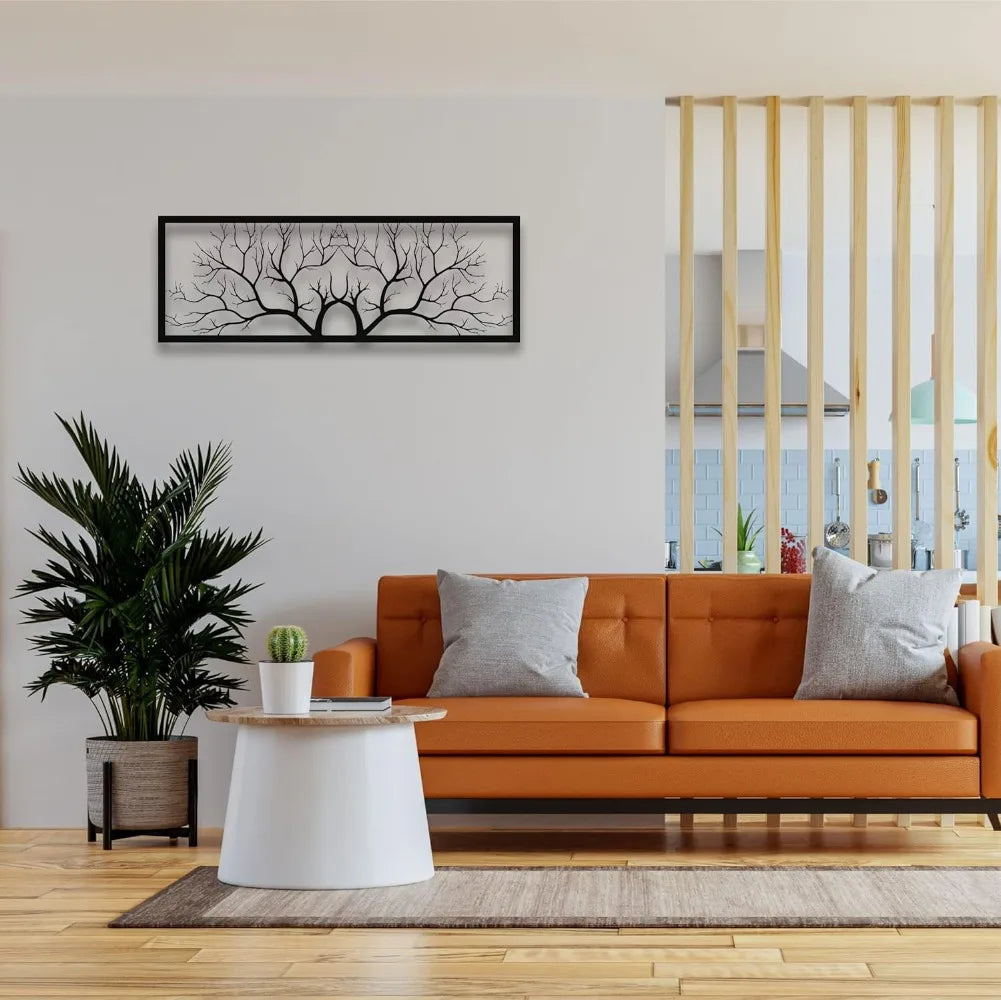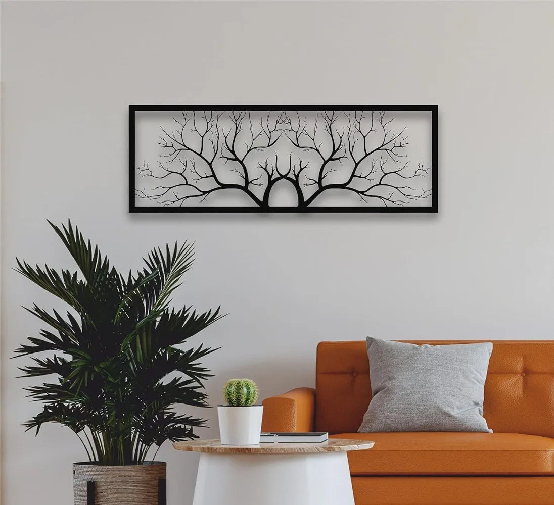 Metal Tree Wall Art, Metal Branch Wall Decoration, Home Living Room Wall Art (59" W x 21" H / 150x53cm)